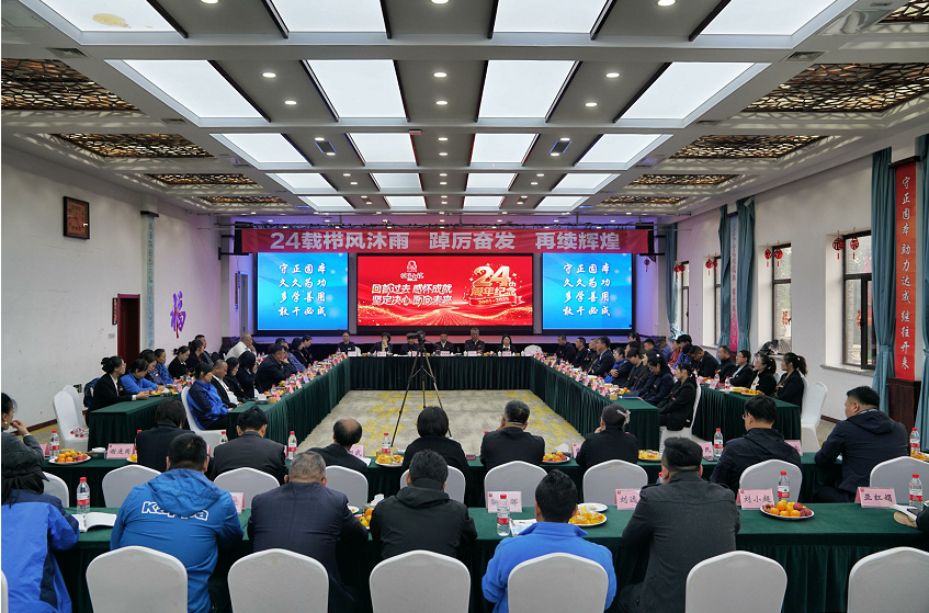 2025年10月17日,葫芦古镇文旅集团在湖畔宴会厅三楼召开庆祝开工建设24周年座谈会。会议以“回首过去、感怀成就、坚定决心、面向未来”为主题,旨在进一步增强员工责任感、自豪感与荣誉感,凝聚集团向心力、战斗力与凝聚力。